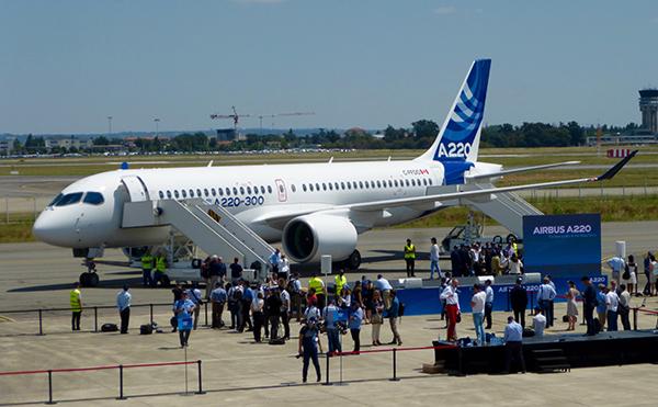 The A220 family includes two models: the A220-100 (former CS100) and A220-300 (former CS300, pictured).