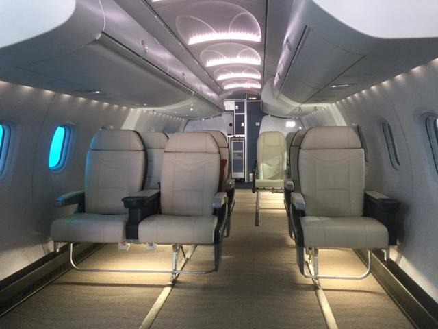 "And this is what it will look like when it's ready." One interior option for the future revamped, Turkish-built version of the Dornier 328 was on display in the static park.