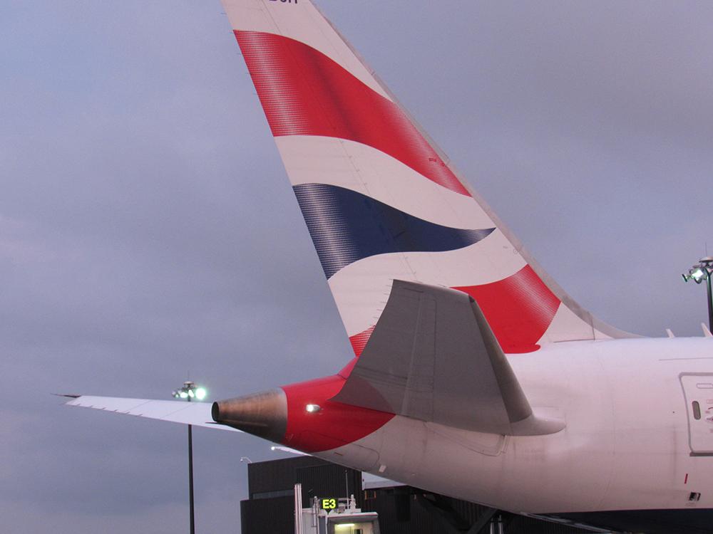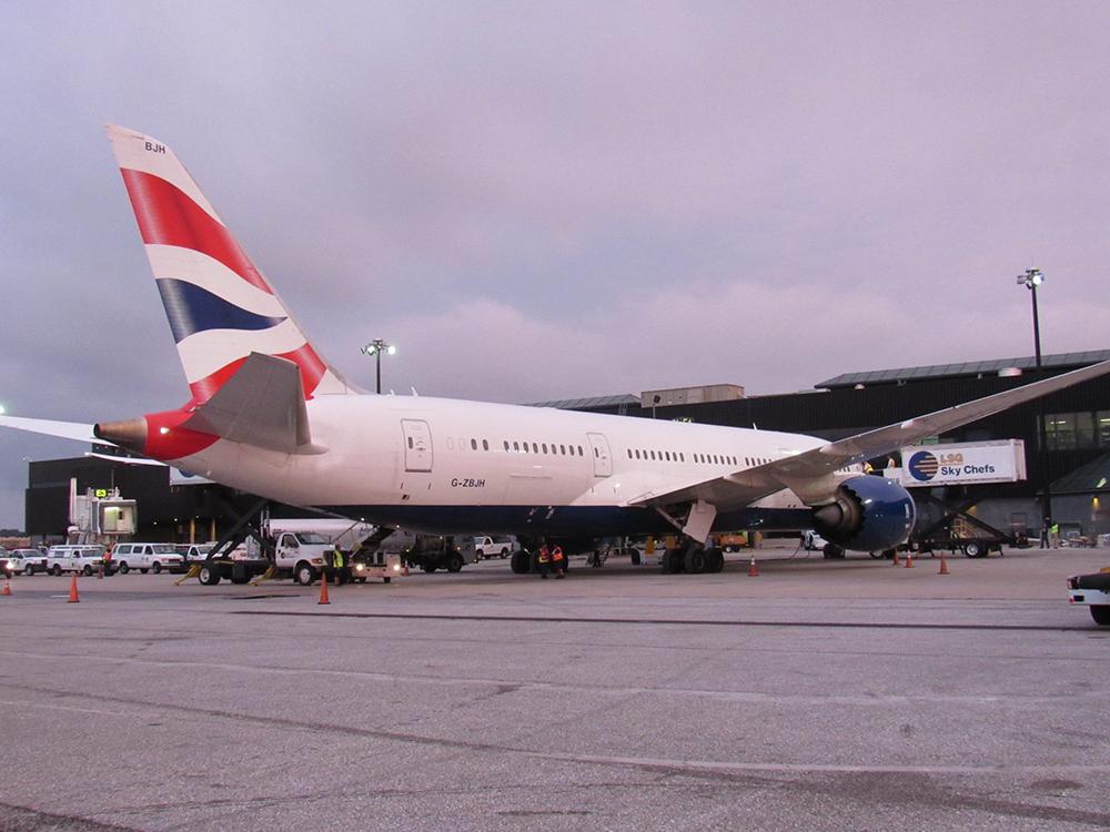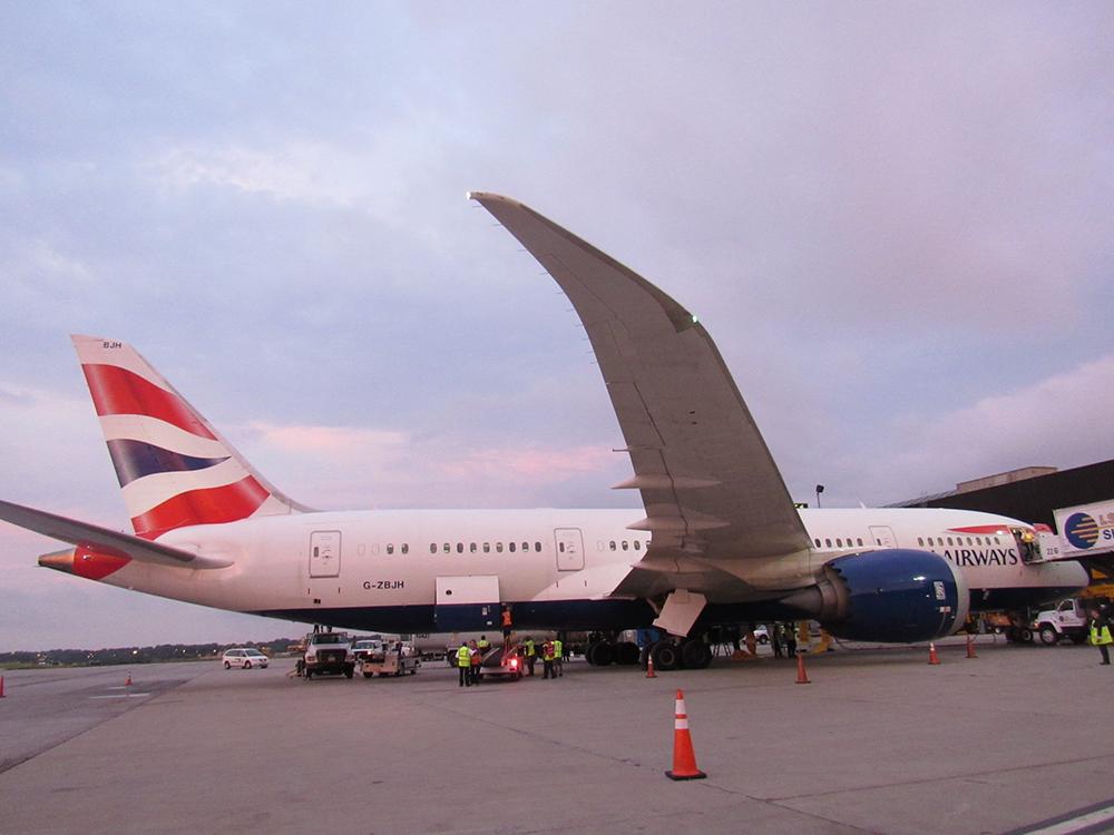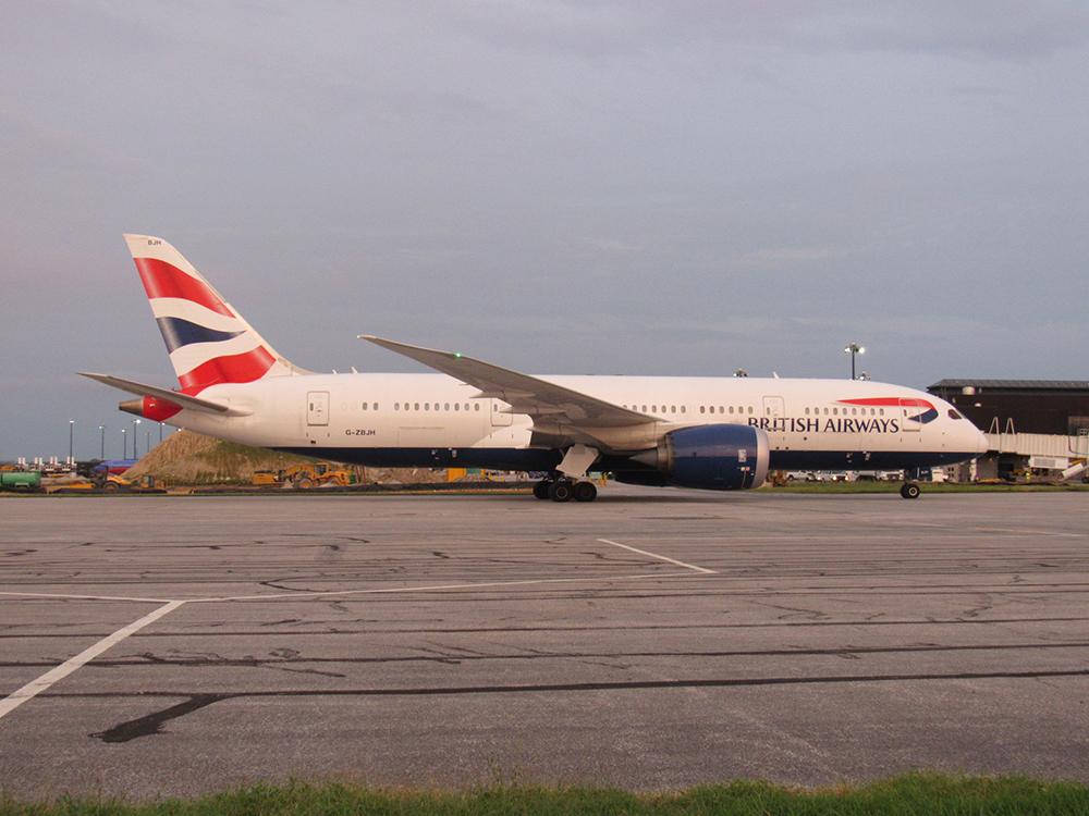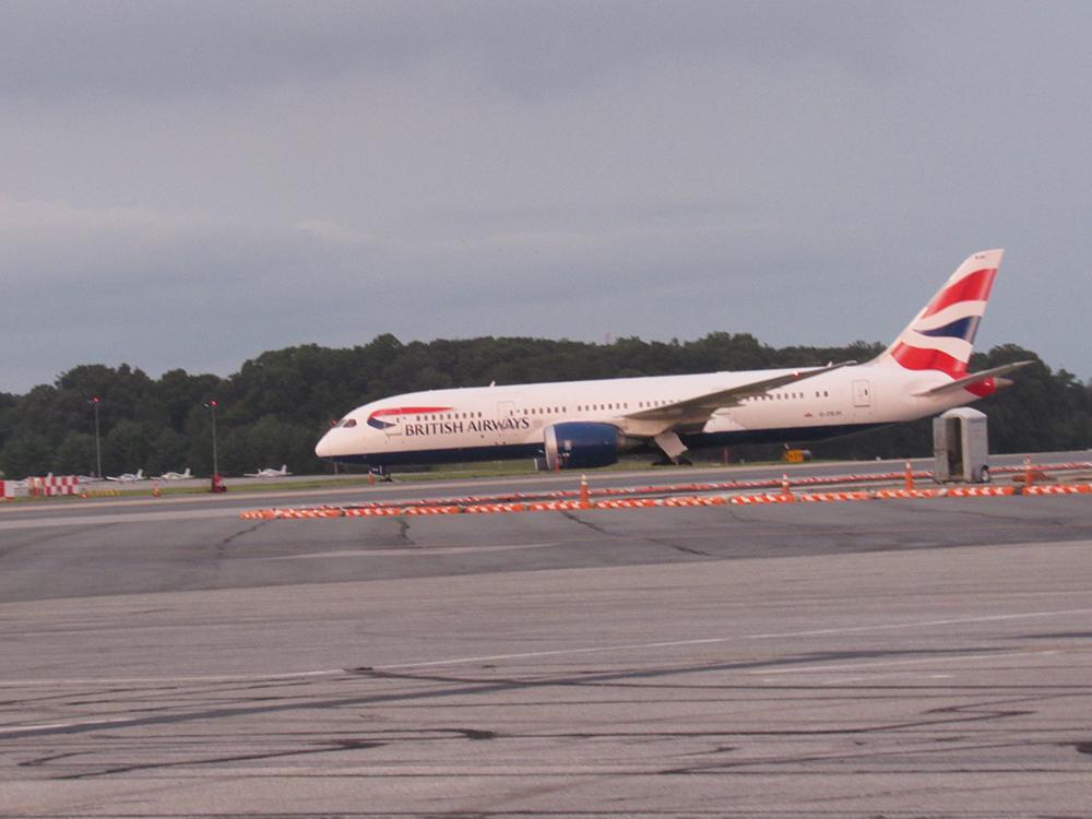 The British Airways 787-8 taxis on the runway after landing at BWI.