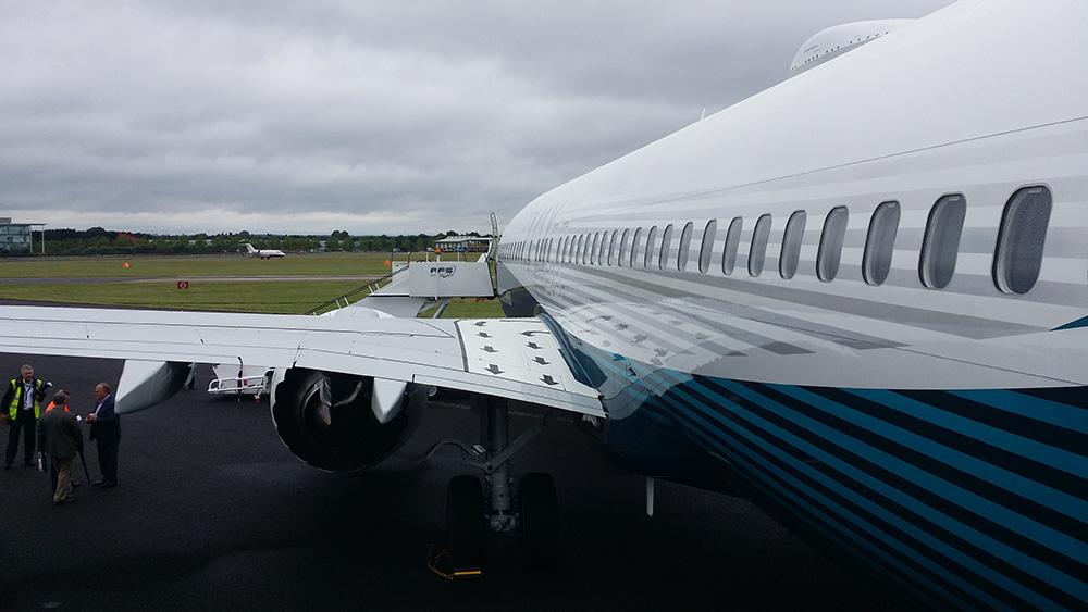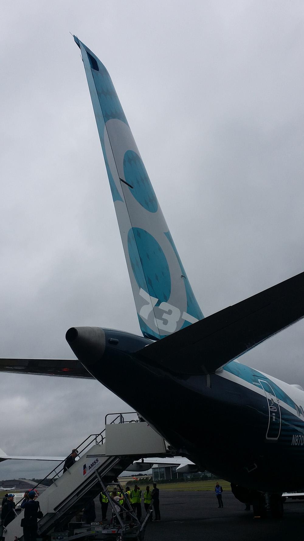 Boeing 737 MAX made its international airshow debut July 11 when it took part in the flying display of the Farnborough Airshow 2016. The aircraft, the fourth flight-test aircraft in the MAX program and an -8 variant, was flown across the Atlantic by Boeing specifically to appear at Farnborough. Reporters were given a preview of the aircraft July 7, a day ahead of the show opening.