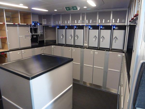 A huge galley is located in the rear section of the aircraft.