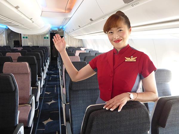 A flight attendant welcomes ATW on board.