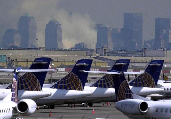 Continental Express aircraft sit at the closed New York Newark Airport the day after the terrorist attacks on the World Trade Center. One of the hijacked planes departed the Newark Airport and later was crashed in a field in Shanksville, Pennsylvania.