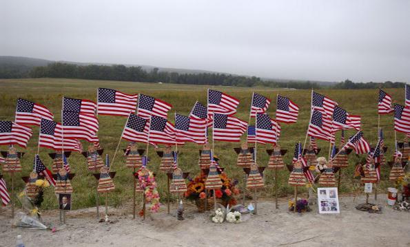 American flags fly at the memorial site in Shanksville, Pennsylvania, where the United 757 crashed.