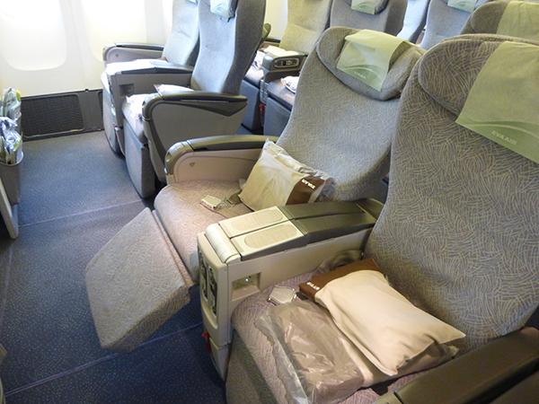EVA Air was the first airline worldwide to establish a premium economy class in 1992. Called elite class, there are 64 seats on this 777.