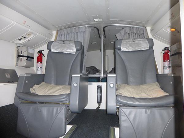 Business class seats transform into a full flat bed.