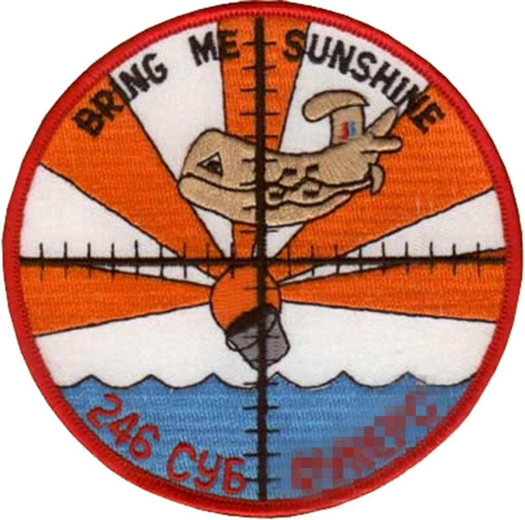 A Cold War patch from RAF 246 Sqdn., flying BAe Nimrod ASW aircraft. The sunrays and bucket refer to a “bucket of sunshine,” RAF slang for a nuclear weapon, and the motto is the title of the exit song in the popular Morecambe & Wise TV comedy show.