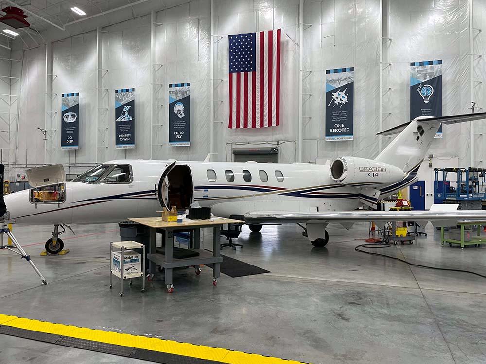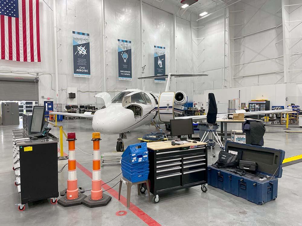 This Cessna Citation CJ4 was on-site for a business jet program AeroTEC is working on. AeroTEC found the aircraft, leased it and, during Aviation Week’s visit, was preparing the aircraft for tests. In these types of situations, aircraft receive a temporary “experimental” airworthiness certificate. Once projects are complete and it is time for a lease return, AeroTEC works with designated airworthiness representatives to make sure aircraft are airworthy and maintenance is up to date.