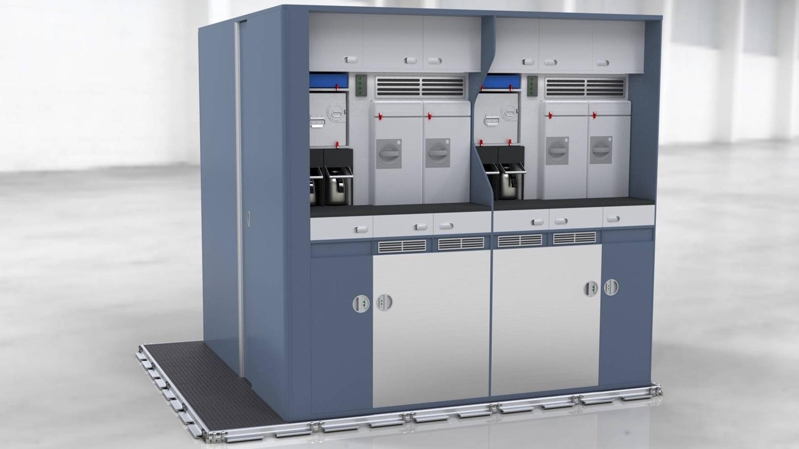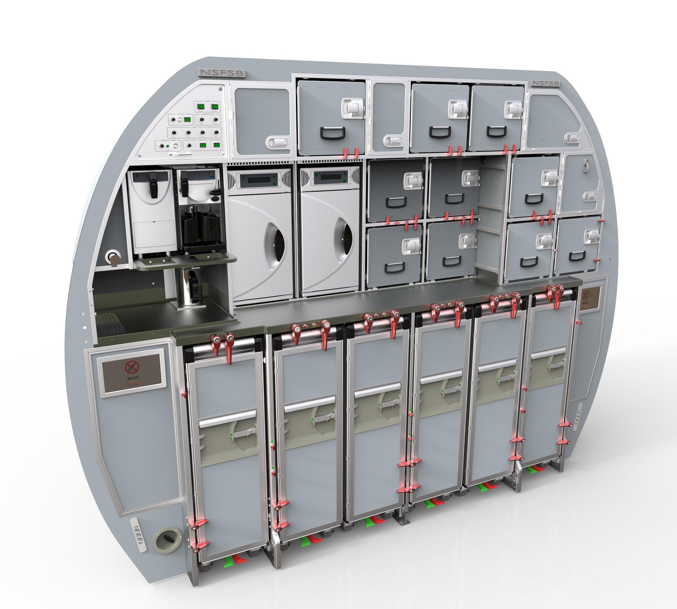 Although galley designs are usually focused on commercial aircraft, Collins Aerospace recently partnered with Knight Aerospace, a provider of modular and palletized systems for aircraft, on an innovative new galley product for military cargo aircraft. The Air Transportable Galley/Lavatory System (ATGL) is a universal system featuring a full-service galley and two lavatories mounted on a customized pallet that can be loaded on board any cargo aircraft. The ATGL interfaces with the aircraft cargo handling system and can be rolled on and off an aircraft in less than 30 mins. Customers can choose between a variety of options for the galley, including different combinations of refrigerators, coffee makers, ovens and microwaves. According to the companies, the ATGL is targeted toward use cases serving military personnel during long missions in which aircraft either lack or feature insufficient galley and lavatory functionality.