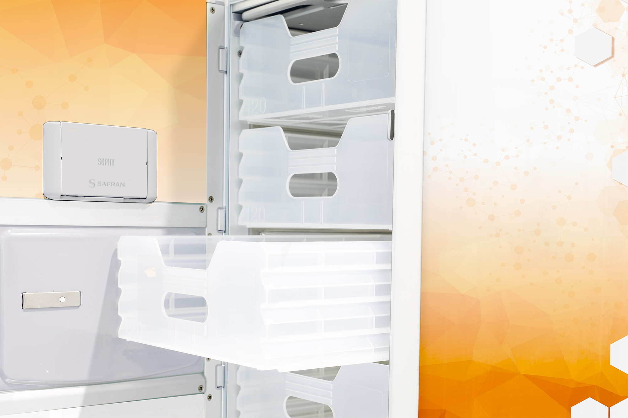 Safran Cabin also offers a variety of galley insert products, such as its new Peltier compartment, which is a fully customizable cooling or warming compartment that Imbert says is lower weight and quieter than standard chillers.