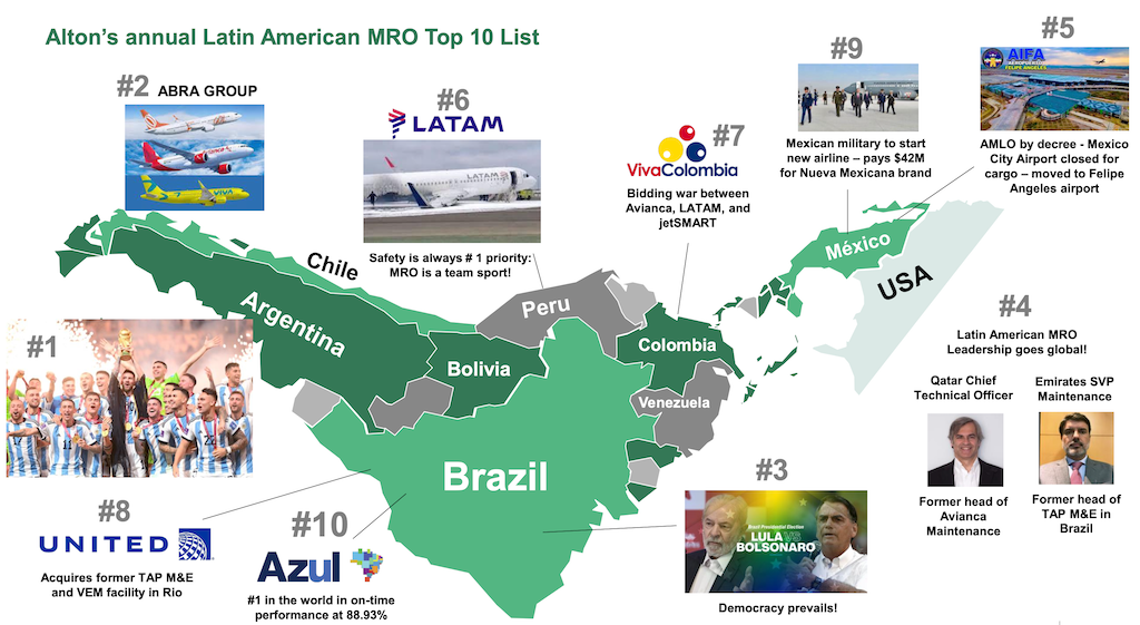 While Copa didn’t make it into Jonathan Berger’s annual Latin American MRO Top 10 List this year, a few others did. Berger, Alton Aviation Consultancy managing director, delivered his call-out list at Aviation Week’s MRO Latin America on Feb. 22.