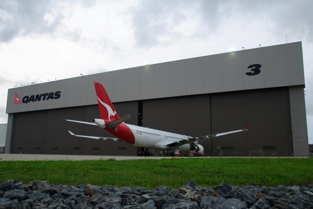 Qantas’ widebobody hangar includes electronically controlled docking for two aircraft.