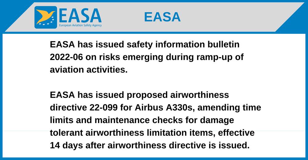 EASA has issued safety information bulletin 2022-06 on risks emerging during ramp-up of aviation activities.