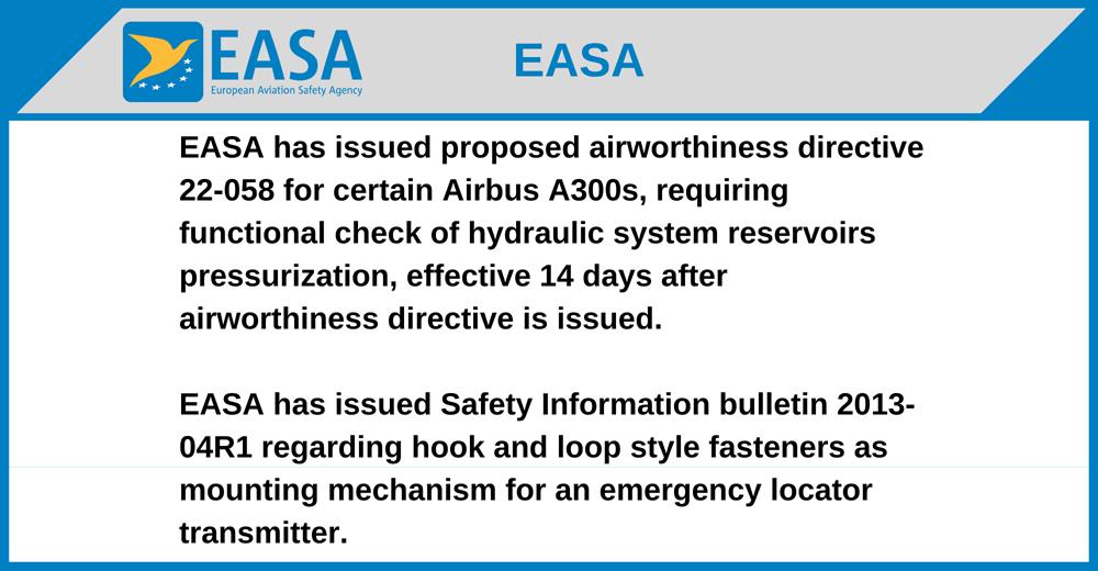 EASA has issued proposed airworthiness directive 22-058 for certain Airbus A300s, requiring functional check of hydraulic system reservoirs pressurization, effective 14 days after airworthiness directive is issued.