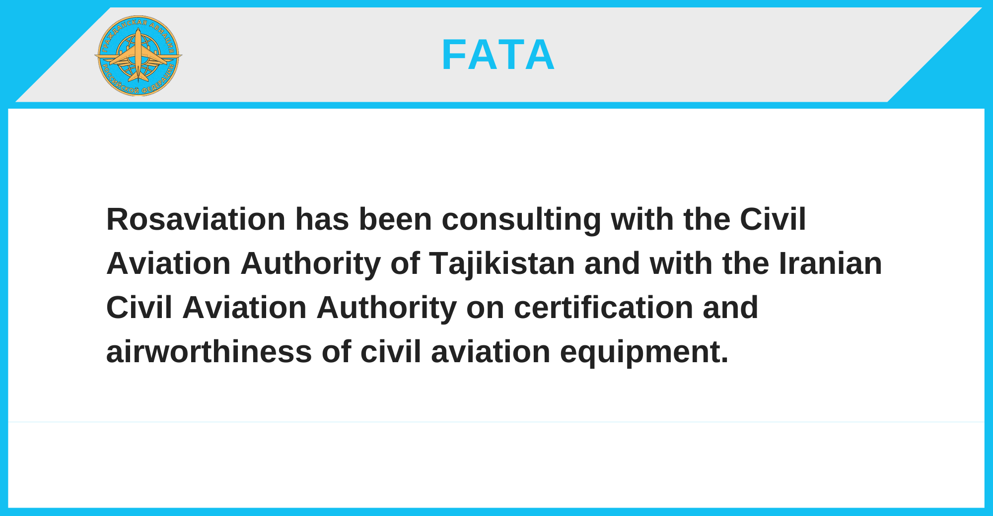 Rosaviation has been consulting with the Civil Aviation Authority of Tajikistan and with the Iranian Civil Aviation Authority on certification and airworthiness of civil aviation equipment.