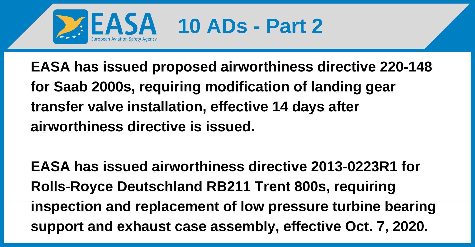 EASA has issued proposed airworthiness directive 220-148 for Saab 2000s, requiring modification of landing gear transfer valve installation, effective 14 days after airworthiness directive is issued.