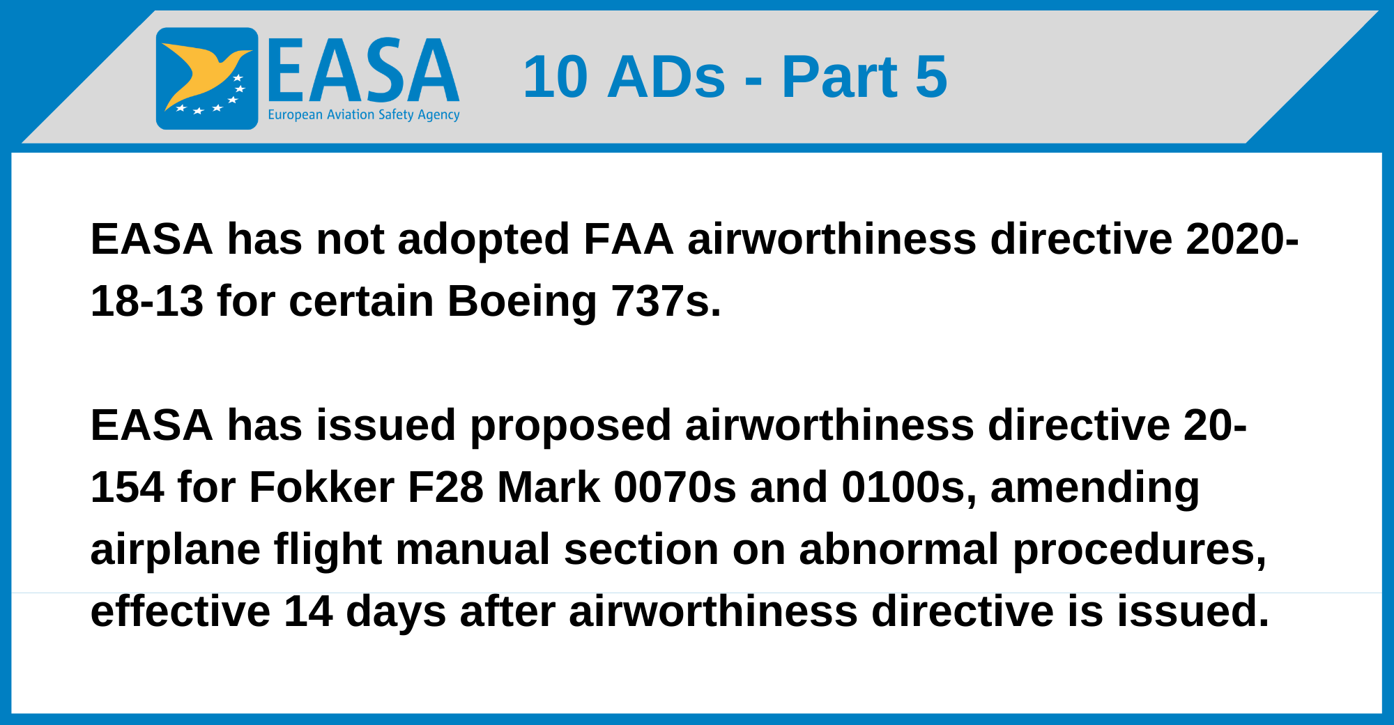 EASA has not adopted FAA airworthiness directive 2020-18-13 for certain Boeing 737s.