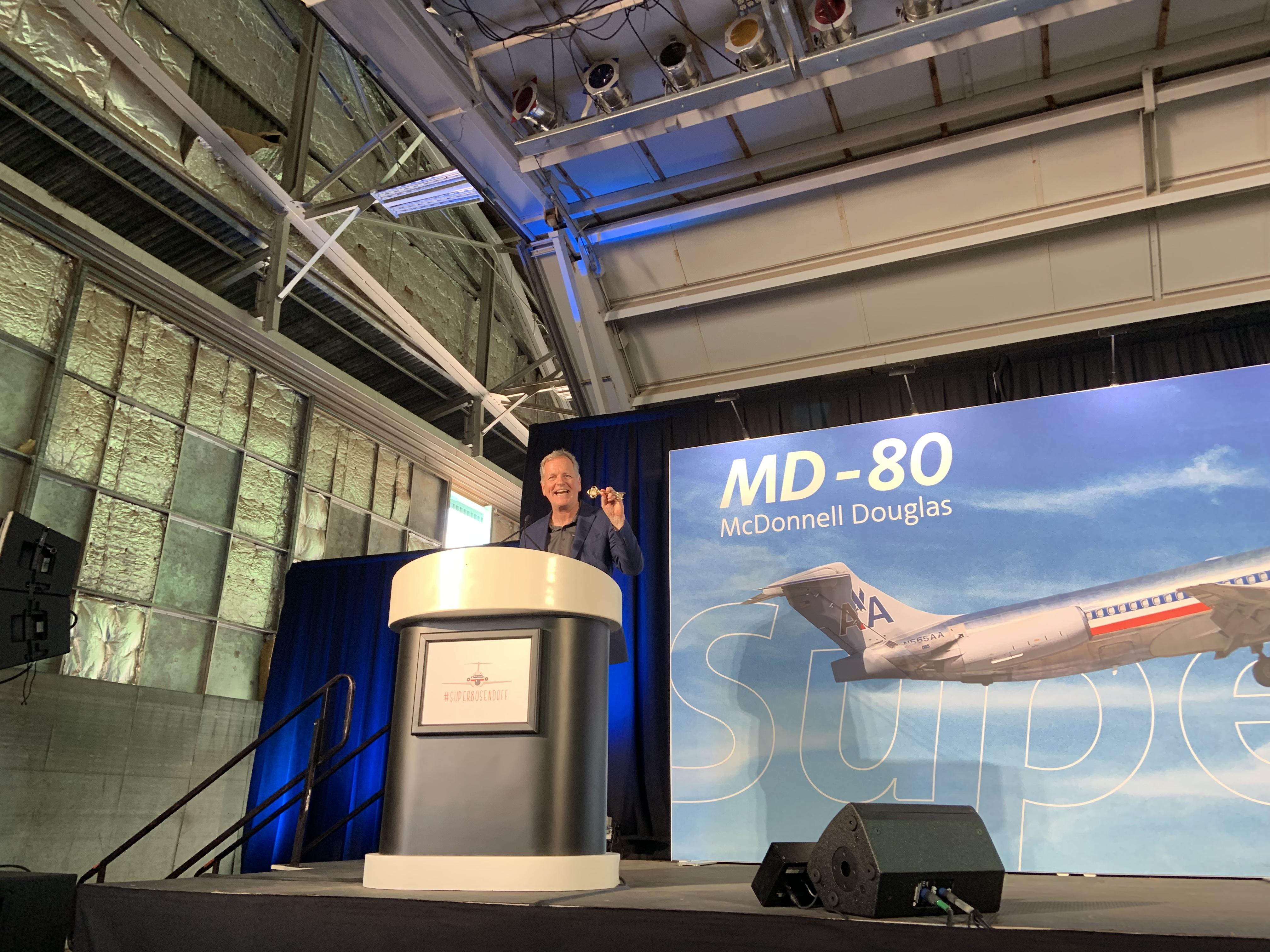 American Airlines Chairman and CEO Doug Parker noted that the MD-80s replaced older, less efficient aircraft (the 727-100), and now it’s time to make way for new aircraft again. “But for those of you here, you get it,” it’s about appreciating what the aircraft has done for the airline and its uniqueness. Parker noted it’s good to appreciate history and “look forward to where we’re going.”