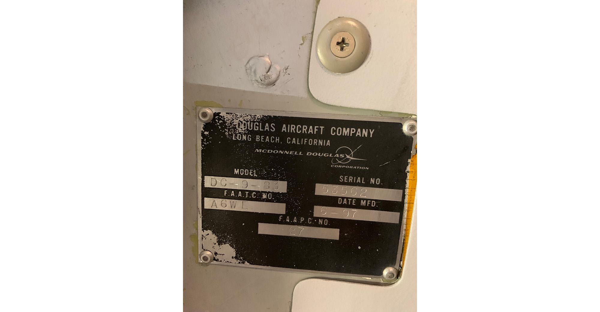 Here’s the aircraft’s nameplate. American Airlines flew MD-81s, -82s, 83s and -87s.