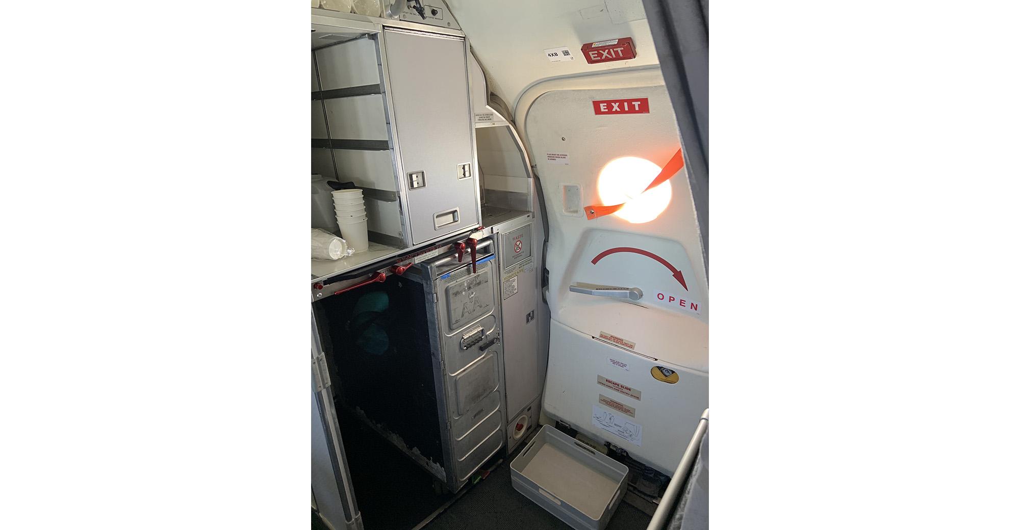 After the aircraft flown as flight AA80 landed, the plane was open for us to see the graffiti covering the inside. Apparently, the last passengers traveled with Sharpies.