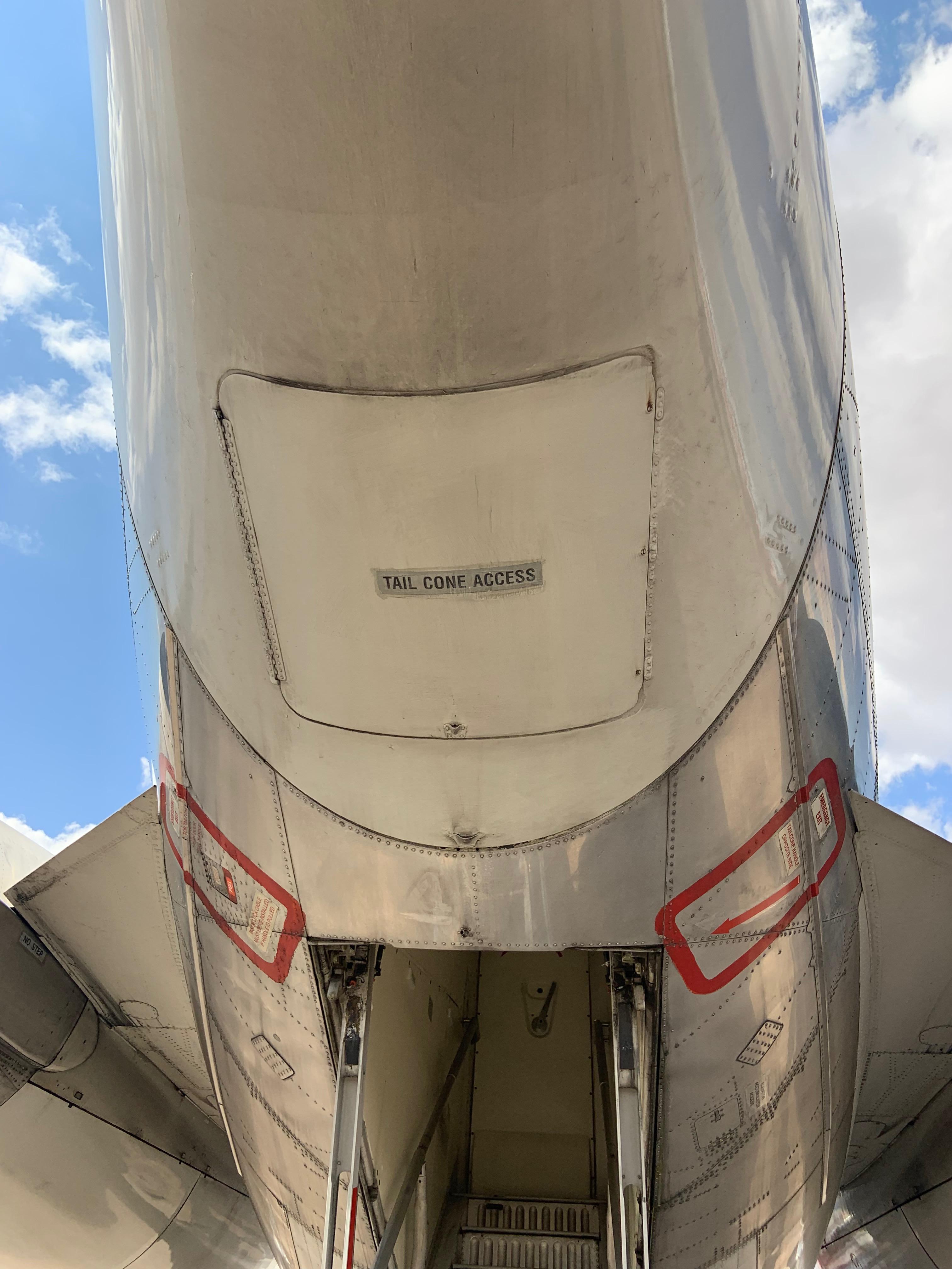 One unique thing about the MD-80 is its tail cone, where the air condition system and emergency slide are housed. A cat walk pulls down from inside the aircraft to access it.