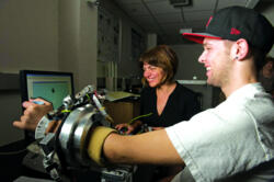 Soldiers with severe spinal cord injuries may benefit from the development of a therapeutic exoskeleton that mimics the movement of arm joints. Called RiceWrist, the articulated exoskeleton retrains the motor-neuron pathways of spinal cord injury victims, says Marcia O'Malley, associate professor of...