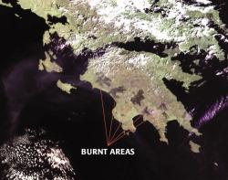 Hot-spot records collected from space show Greece suffered more wildfires in August than other European nations did during the past decade. This medium-resolution imaging spectrometer view collected Aug. 27 from the European Space Agency’s Envisat spacecraft shows the results, with vast stretches of...