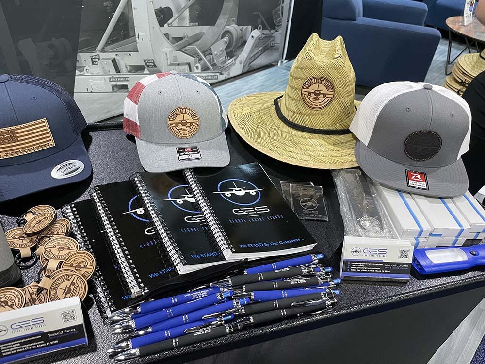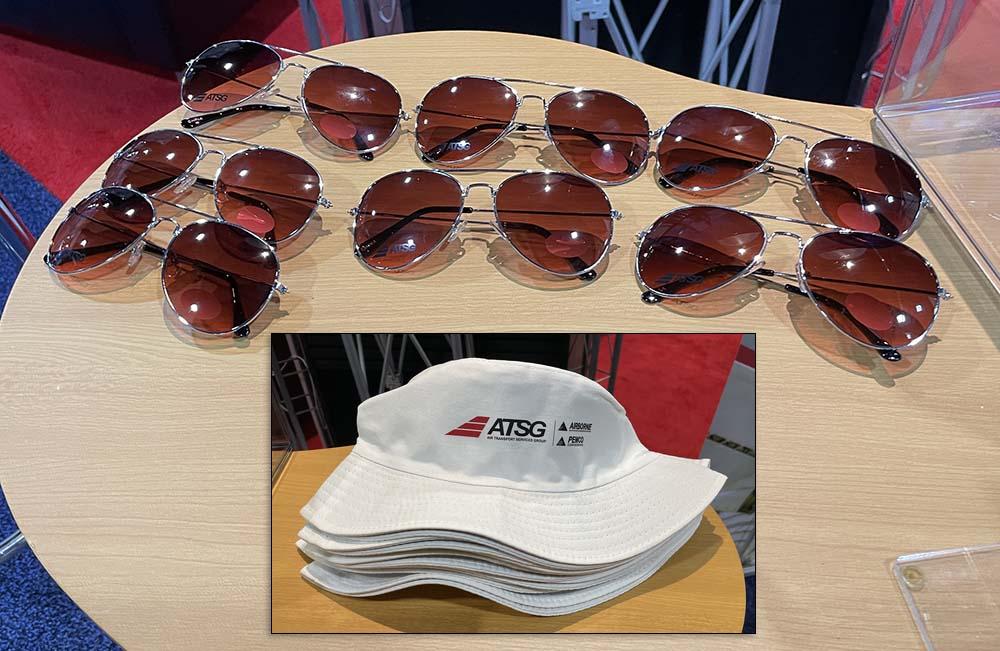 Keep cool—figuratively and literally—with a pair of aviator sunglasses or a bucket hat from Airborne Maintenance & Engineering Services, booth #2619.