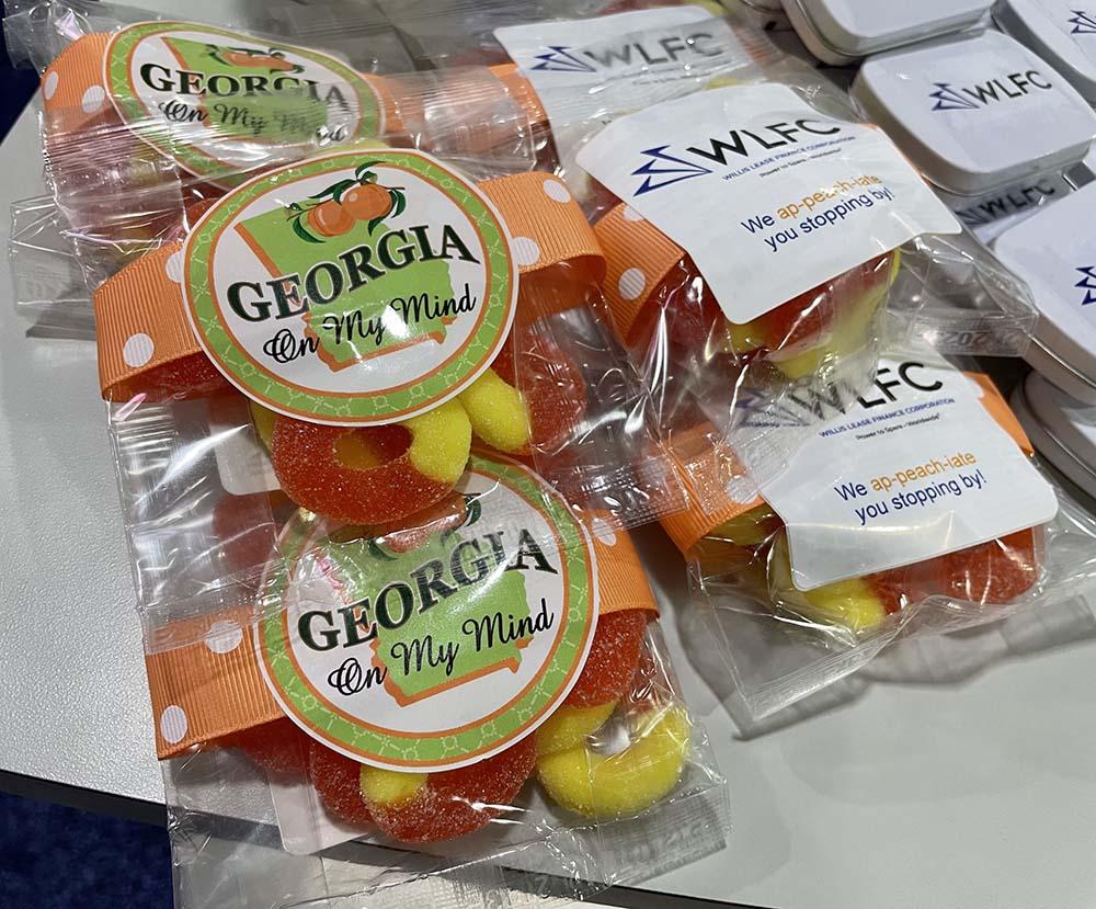 Craving some local flavor? Willis Lease Finance Corporation is handing out Georgia peach-flavored gummy candy at booth #2423.