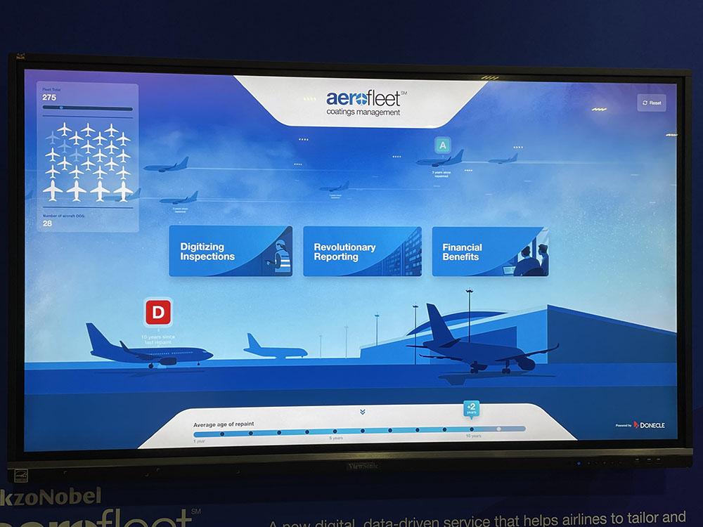 AkzoNobel also debuted a new 3D version of its virtual reality paint training system, which can be used to teach technicians how to apply paint and coatings to aircraft and components more efficiently. The system can be programmed for specific components and paint specifications, mimicking a production environment so a technician can learn the optimal distance, angle and speed of the spray gun. It provides feedback to show technicians where their technique can improve, such as areas where too much or too little paint was applied. The system is being used by customers such as American Airlines and Embraer to train painters.