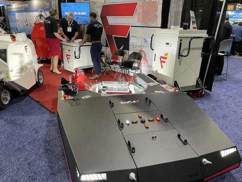 Towbarless remote controlled tugs help turn aircraft on the spot. Great for hangar stacking. Visit FlyTek GSE at booth number 2750 to see this TF5 tug.