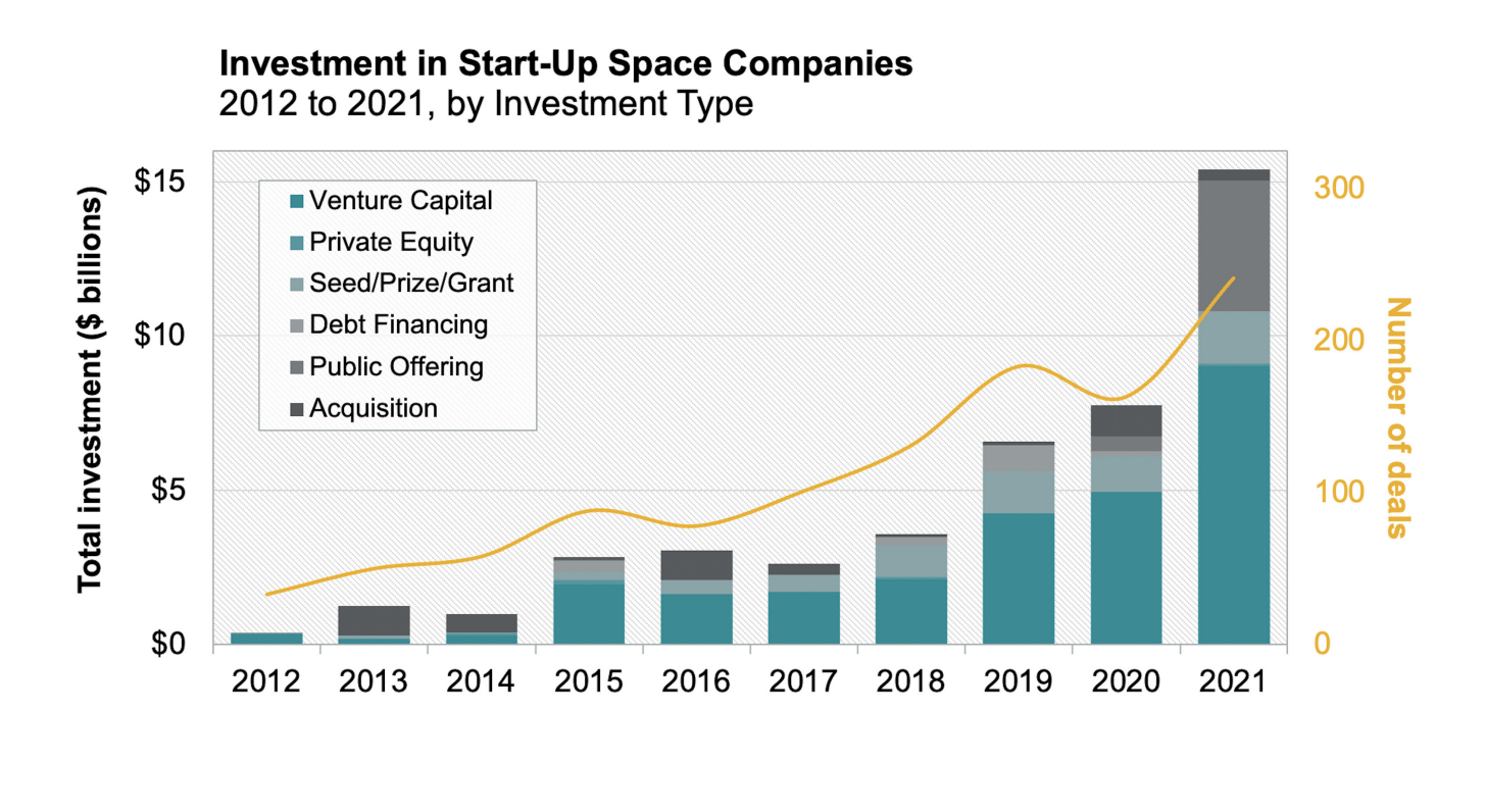 Last year also set a record for the number of space startup investments made, with 241 transactions completed, up 48% from 2020. The average deal size climbed 35% to $64 million.