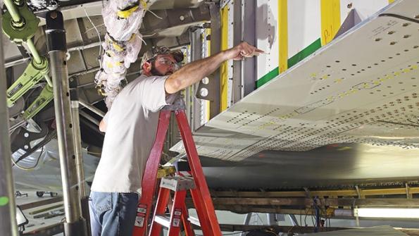 Work to convert the former Virgin Atlantic Boeing 747-400 into the carrier aircraft at L3 Platform Integration in Waco, Texas, is roughly three-quarters done and on track for completion by midyear, says Kevin Sagis, LauncherOne chief engineer. The work is focusing on beefing up the inboard port wing...