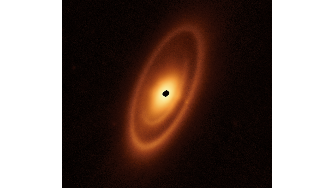 Webb’s Mid-Infrared Instrument captured this image of three nested belts of debris surrounding the young star Fomalhaut that are thought to be created by the gravitational forces from hidden planets. Although sharp images of the outermost belt were taken previously, this image exhibits the interior structure of the belt and also displays the inner belts for the first time.