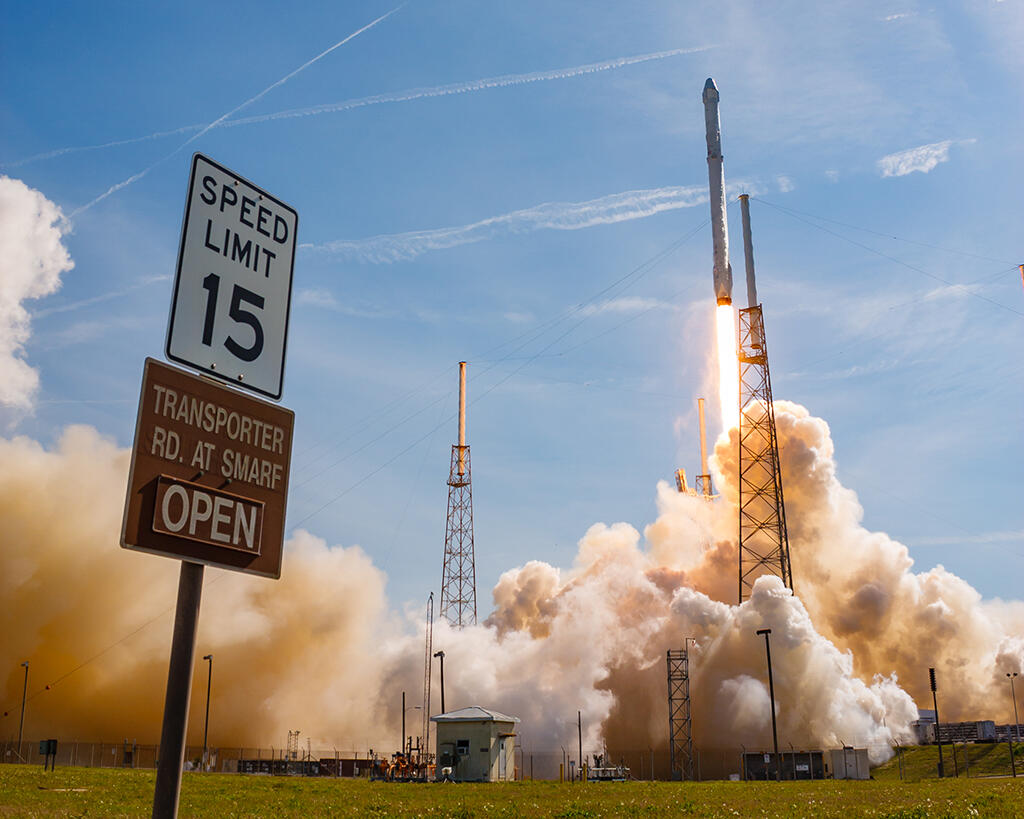 SpaceX's Dragon spacecraft and Falcon 9 rocket launch on the eighth mission to resupply the International Space Station, conducted under NASA's Commercial Cargo contract. Cape Canaveral AFS, Florida.