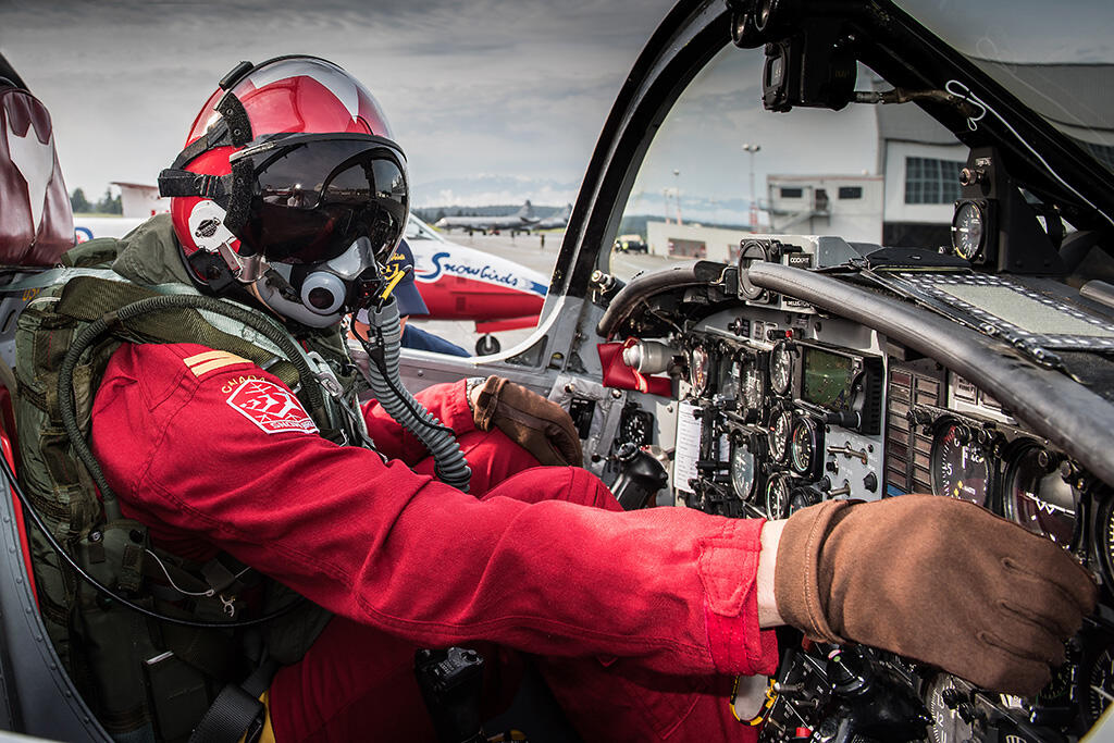Snowbird 5, Capt Matthew “Hitman” Hart, runs through his startup procedures in preparation for another practice at 19 Wing at Royal Canadian Air Force Base Comox, British Columbia, during the Canadian Forces aerobatic demonstration team’s spring training deployment.