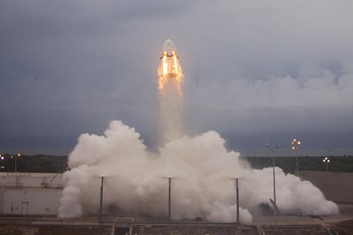 SpaceX completed the first flight of its Crew Dragon manned spacecraft with a May 6 launch abort system test at Cape Canaveral. The test showed the abort system’s eight 15,000-lb.-thrust SuperDraco engines, integrated into the sides of the capsule, could carry astronauts to safety if there was an emergency on the launch pad.