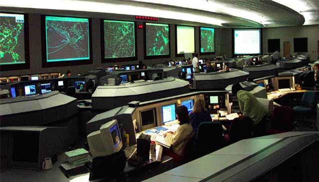There is one center that oversees the entire U.S. air traffic control system. The David J. Hurley Air Traffic Control System Command Center in Northern Virginia manages the 5,000 aircraft that are in the sky at any given moment. The center operates 24 hours a day and works with others in the aviation industry to minimize air traffic delays and congestion. (Photo Credit: FAA)