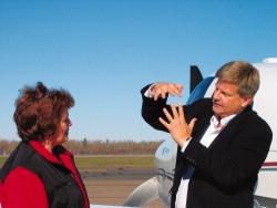 Cirrus Design co-founder Alan Klapmeier (right) instructs Senior Safety & Training Editor Frances Fiorino as he hand-flies an SR22 through intricate maneuvers on the flight line at Cirrus headquarters at Duluth, Minn. Fiorino flew the four-seat SR22-GTS (Generation Three Super) technologically...